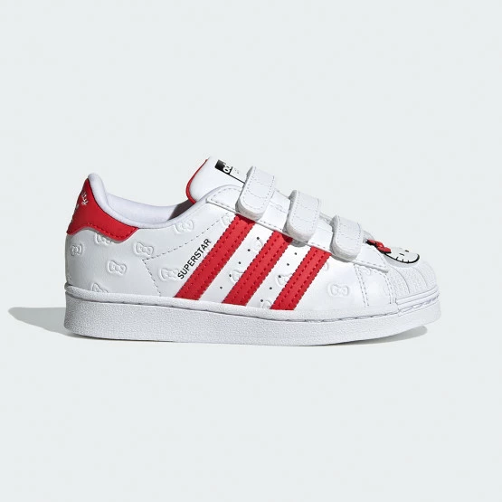 Αυτή η παιδική εκδοχή των superstar είναι εμπνευσμένη από την Hello Kitty. Οι ανάγλυφοι φιόγκοι στο πλάι αλλά και το πρόσωπο της Hello Kitty στο μπροστινό μέρος του παπουτσιού, δημιουργούν μια διασκεδαστική και παιχνιδιάρικη εμφάνιση ενώ παράλληλα μας υπενθυμίζουν τα μαθήματα και τις αξίες που μοιράζεται η Hello Kitty.