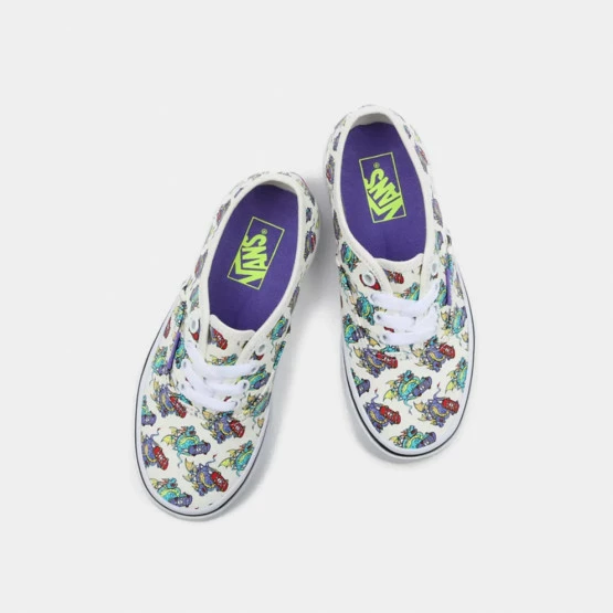 Τα Αuthentic είναι διαχρονικά ένα από τα πιο διάσημα μοντέλα και αγαπιέται από μικρούς και μεγάλους. Η συγκεκριμένη έκδοση έχει σχέδια με δράκους που κάνουν skate σουρεαλιστικό ή παιχνίδιάρικό? Σίγουρα είναι τέλειο για τα παιδιά!Διαθέτει επίσης όλα τα κλασσικά στοιχεία των Authentics, όπως είναι η εξωτερική σόλα waffle.
